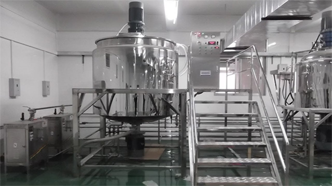 Manufacturing vessel is cylindrical vessels with either hemispherical or dished bottom vessels. Top of the vessel is also dished end. Silicon gasket is provided between vessel and top lid. Agitator assembly in the manufacturing vessel., Bottom entry Homogeniser & Top Dual speed anchor agitator is provided in the manufacturing vessel. Hydraulic lifting of the top lid is provided in manufacturing vessel for cleaning. Suitable nozzles, manholes, valves etc are provided in all the vessels. Vessel is also provided with jacket which can be used for both heating and cooling. However in manufacturing vessel mainly cooling is done. Manufacturing vessel can be subjected to full vacuum.